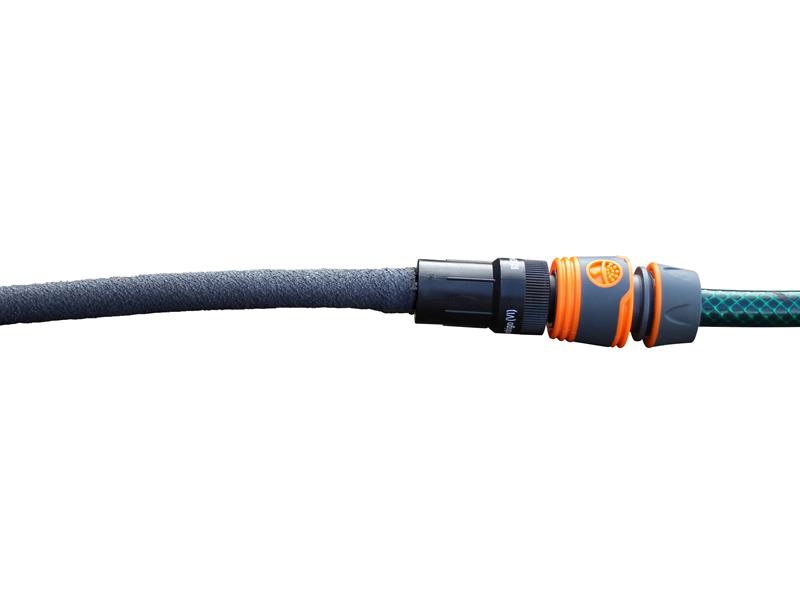 The pressure reducer ensures consistent water distribution along the entire hose. Made from recycled rubber, the hose is UV-resistant and treated to prevent algae formation.