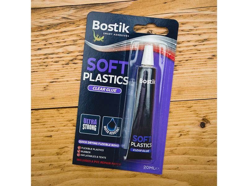 Bostik Soft Plastics glue is an ultra strong, quick drying, water resistant clear adhesive, perfect for making flexible repairs to things like inflatables and tents.