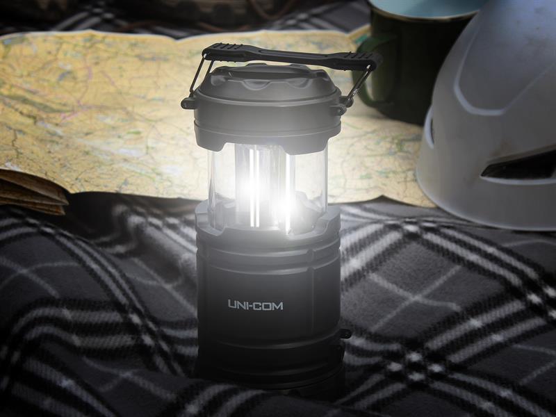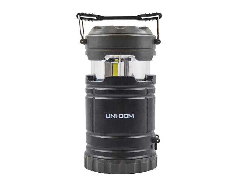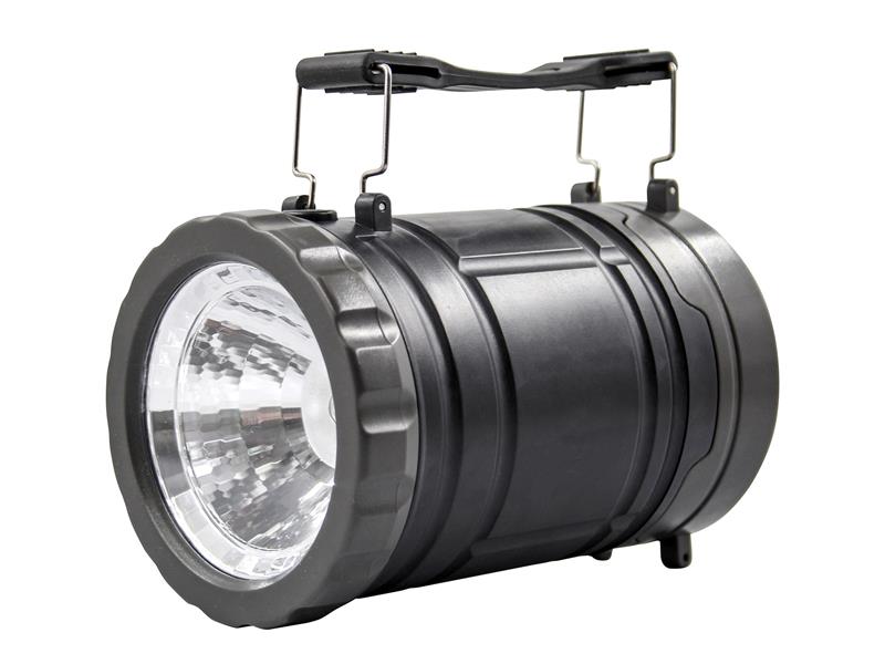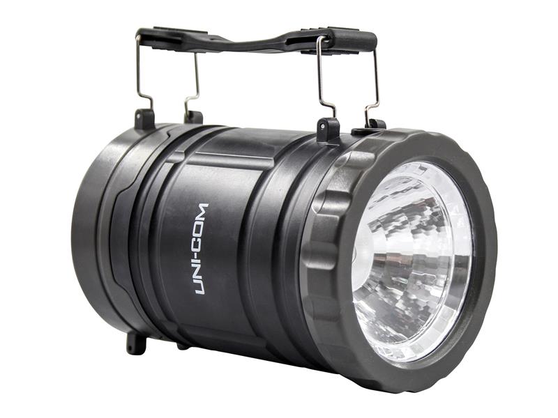 A 2-in-1 Uni-Com Spotlight and Lantern featuring an adjustable handle which, when attached to the side acts as a 1W spotlight and when attached to the top allows for the 360° pop-up 3W COB lantern. The spotlight is operated by the power button on the side, lantern operated by simply pulling the lantern section up. Press down to switch off. Ideal to cover all your DIY, camping and home lighting requirements.