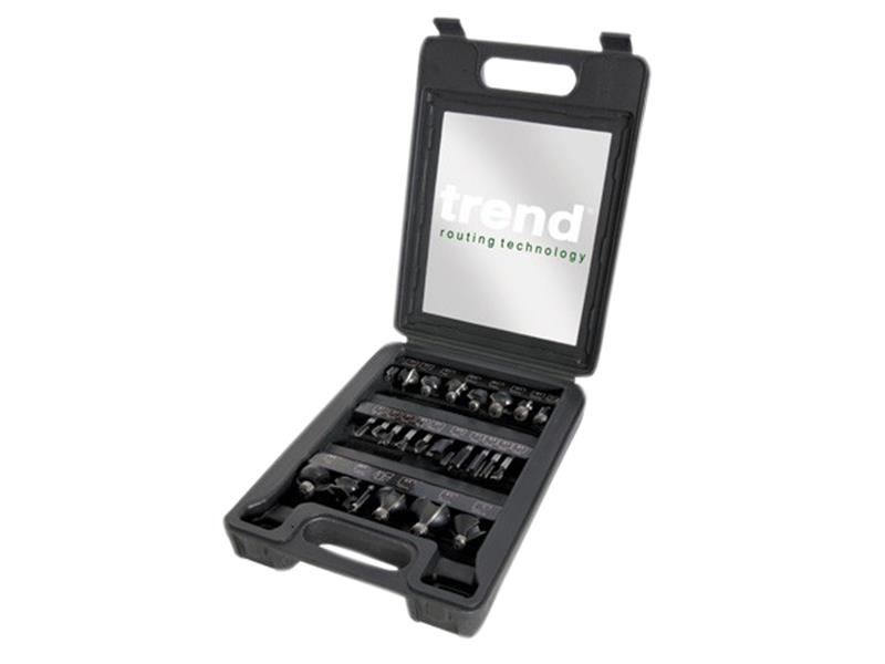24 Piece Trend SET/SS24X1/4TC Starter Cutter Set with a range of popular TCT cutters for a variety of applications. Suitable for softwood, hardwood, chipboard, plywood and MDF. Supplied in a plastic carry case.