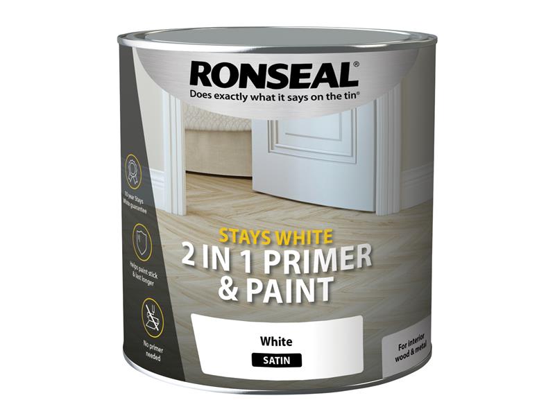 1 x Ronseal Stay White 2-in-1 Primer & Paint Satin 2.5 litre