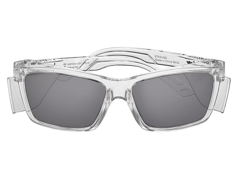 Bolle STKS 420 Safety Glasses with a Crystal Frame. Engineered by Bolle Safety, these sleek, eco-friendly frames are made to keep up with you and your crew, on site and beyond. Certified for serious protection and built for all-day comfort, STKS combines cutting-edge technologies with sustainable materials for durability that won’t quit. The modern frame design delivers a sharp, athletic look while keeping your vision clear and your eyes safe.