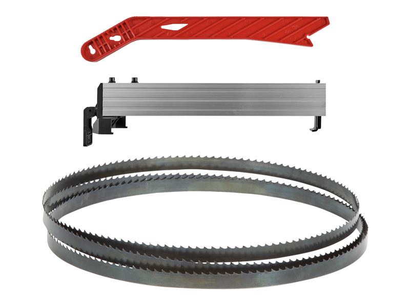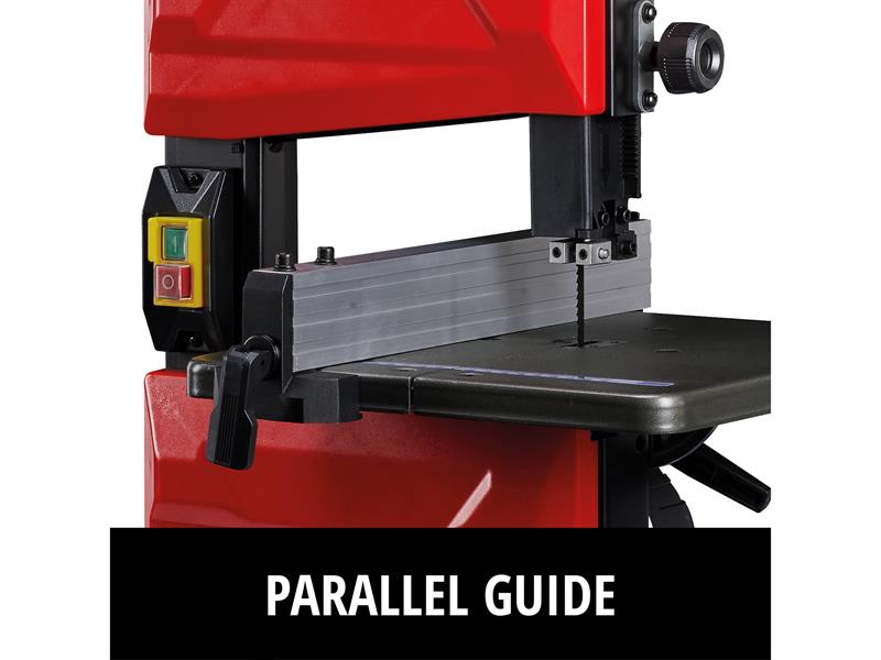 The saw blade guard is also height-adjustable and thereby adaptable to the thickness of the material to be cut. The push stick included in the delivery is indispensable for safe work on the band saw. The saw table is infinitely tiltable, so that even tricky mitre cuts can be achieved. The rip fence and bearing roller guide support the do-it-yourselfer with straight and precise cuts.