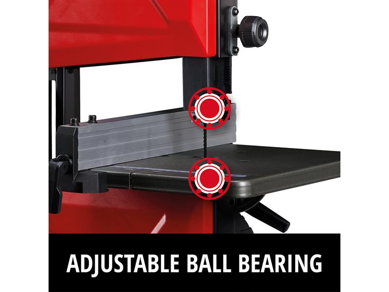A band saw also provides the advantage of a narrow kerf, thereby protecting the material and saving energy. For this purpose, the TC-SB 200/1 provides effective safety with professional operation. The height adjustment is not only used for precise cuts. If adapted to the ideal working height of the user, then the height adjustment also serves as safe and comfortable use. The multiple-adjustable saw blade stabiliser reduces the saw blade vibration and therefore supports reliable use and additionally provides a finer cut.