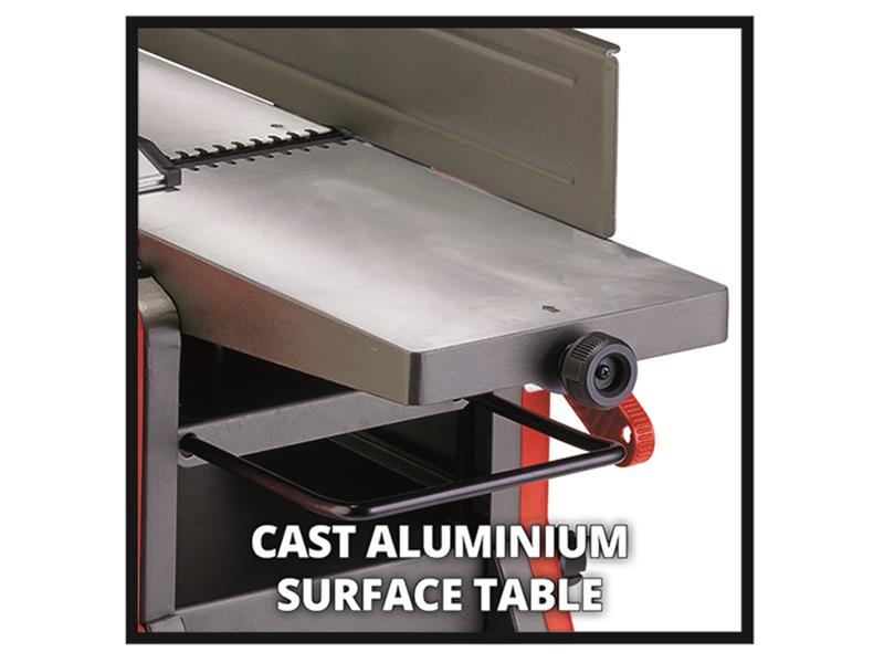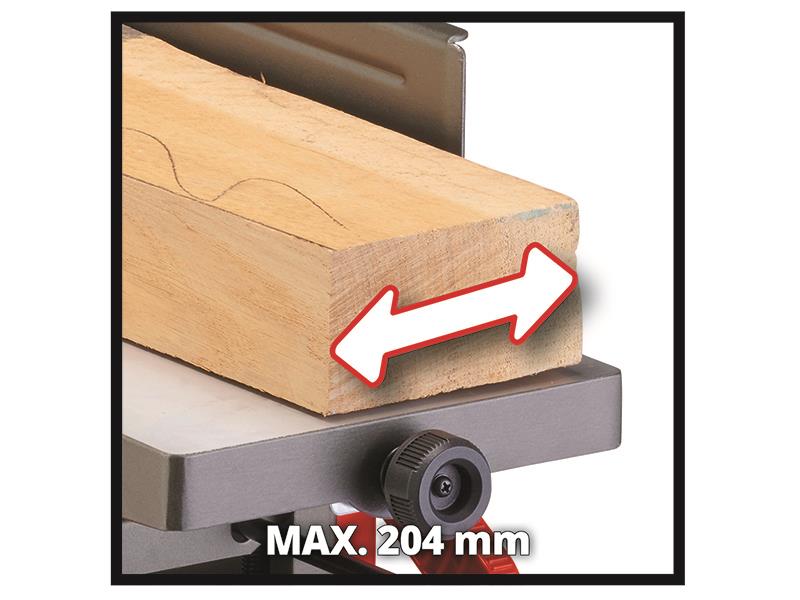 The Einhell TC-SP 204/2 Stationary Planer is a high-quality solid machine with a powerful motor for precise, rapid thickness planing and dressing. With its high performance, the machine keeps the speed of the blade shaft constantly high up to 9,000 revolutions per minute, thereby ensuring optimal planing results. The thicknesser with extendable workpiece support and a fast, automatic insertion rate of maximum 6 m/min is easy to handle.