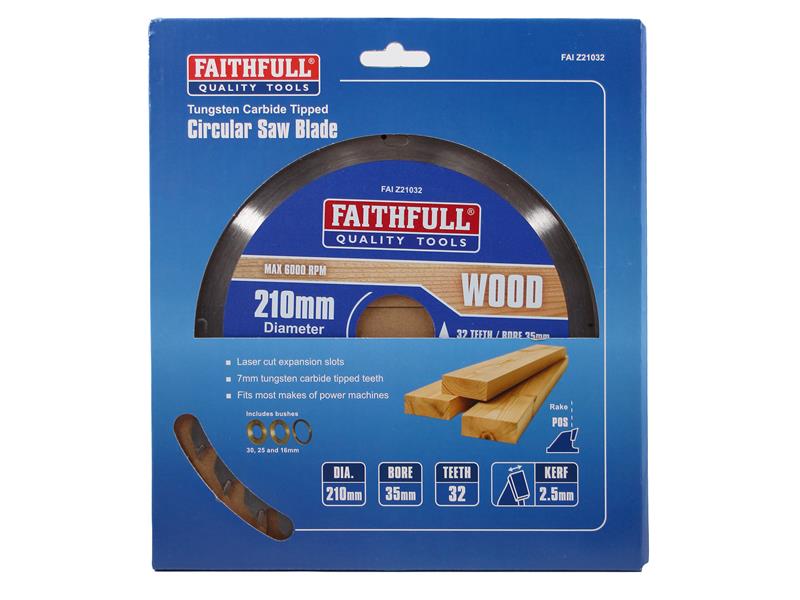 Faithfull Professional TCT Circular Saw Blade with 7mm Tungsten Carbide Tipped teeth to ensure a long working life and accuracy of cut. Each blade has laser cut expansion slots to improve their performance by reducing heat build up.