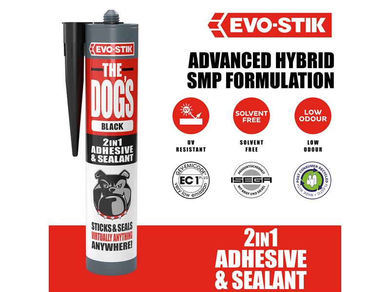 1 x Evo-Stik The Dogs Multipurpose Adhesive & Sealant, Black 290ml