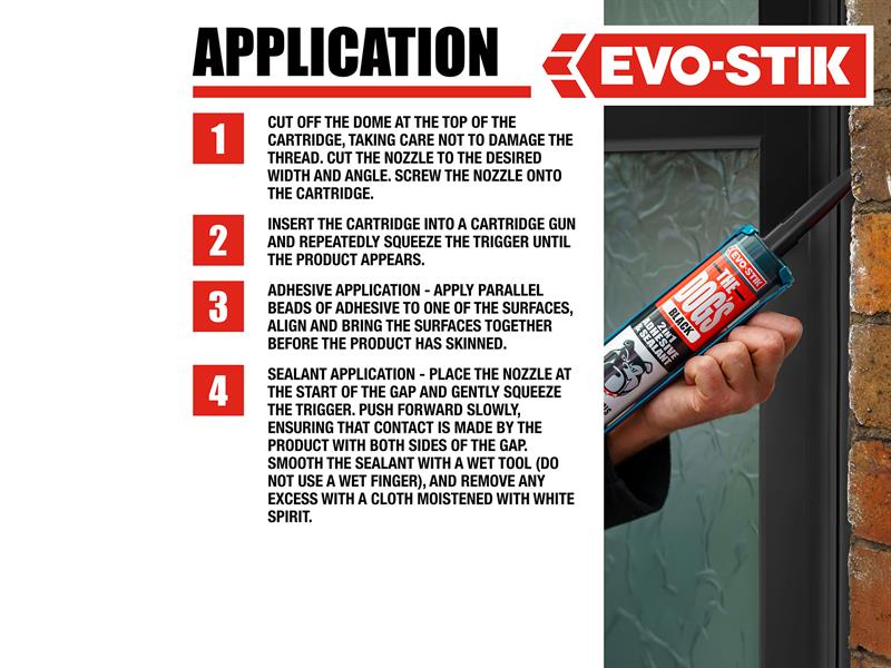 The Dogs Multipurpose Adhesive & Sealant can be used on almost all interior and exterior projects. It has an advanced hybrid formula, making it waterproof, UV and mould resistant. Will stick and seal to almost any building material, even wet surfaces, making it suitable for nearly every task.