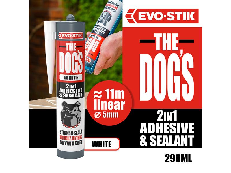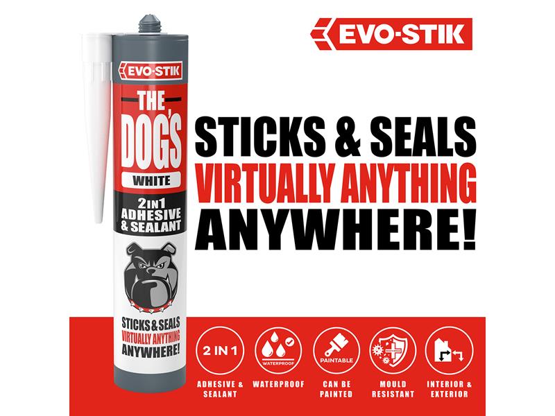 The Dogs Multipurpose Adhesive & Sealant can be used on almost all interior and exterior projects. It has an advanced hybrid formula, making it waterproof, UV and mould resistant. Will stick and seal to almost any building material, even wet surfaces, making it suitable for nearly every task.