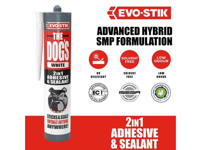 1 x Evo-Stik The Dogs Multipurpose Adhesive & Sealant, White 290ml