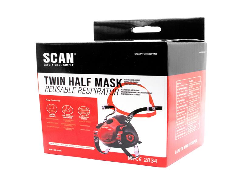 The Scan Twin Half Mask Respirator offers maximum protection and comfort in various environments. Covering the nose and mouth providing a seal to protect against harmful substances like dust, fumes, vapours, and gases. The adjustable elastic straps ensure the mask is properly sealed around the mouth and nose. Fitted with bayonet connectors to accept the Scan range of particle and gas cartridges. Supplied without filters.