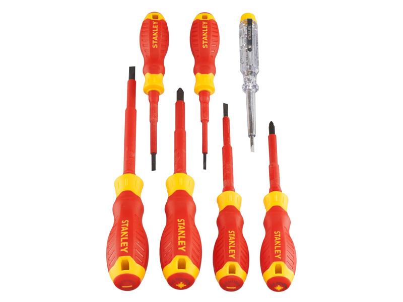 STANLEY® VDE Screwdrivers have a chrome vanadium steel blade with a hardened tip for increased durability and reduced wear. The tapered, slim insulation allows access without modification and safe working to 1,000V. Fitted with a large diameter, bi-material handle for excellent torque transmission and control. Tested to 10,000V, rated to 1,000V AC.
