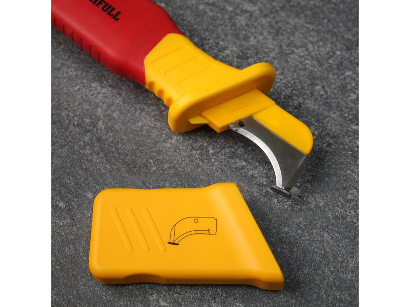 The Faithfull VDE Stripping Knife with Guiding Shoe is a specialised tool designed for precision and safety in electrical work. This knife is perfect for stripping insulation from cables and wires, ensuring clean and accurate cuts every time. The guiding shoe enhances control and stability, making it an indispensable tool for electricians and technicians.