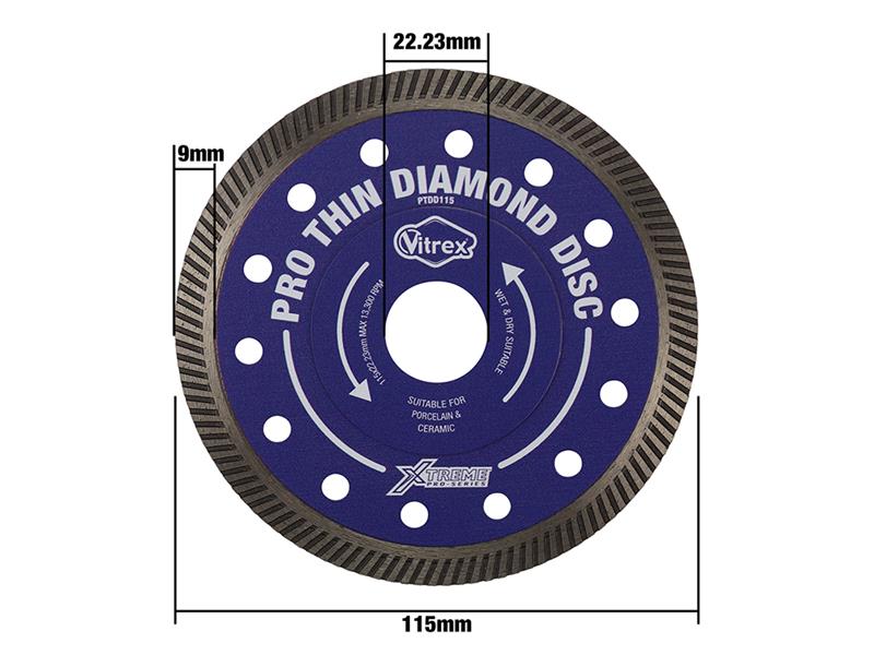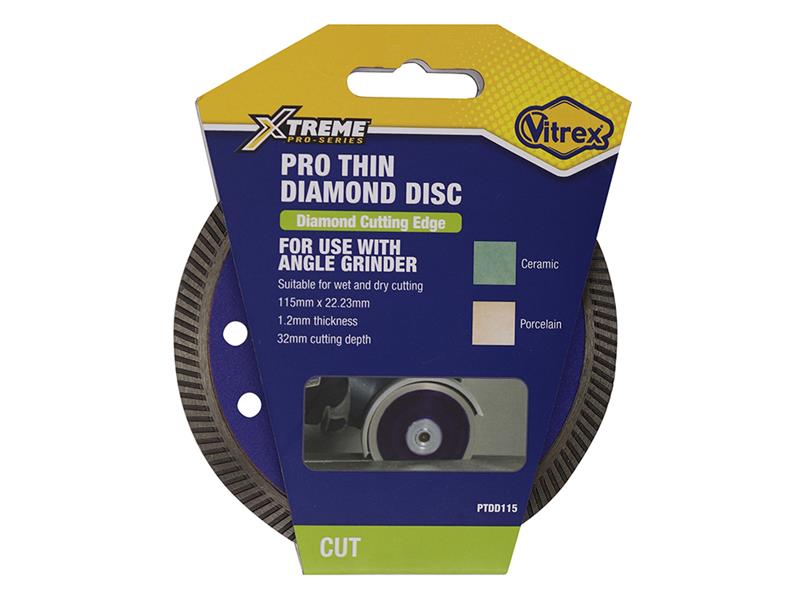 The Vitrex Xtreme Pro Thin Diamond Disc is expertly crafted for use with angle grinders, providing a versatile and efficient cutting experience. This high-performance disc is ideal for both wet and dry cutting applications, making it a perfect choice for various materials and projects.